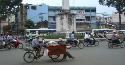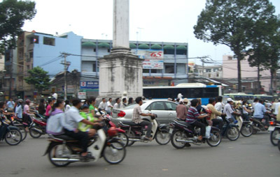 If you go to Vietnam, don't bother bringing boots. Dress as if you are headed to the Sahara Desert. Besides the occasional rain storm, there is mostly just blazing sun and a very warm breeze. We landed late at night. This made for an absolutely surreal initial experience. Ho Chi Minh is a big city. Big and dirty. Most of the lights were out in the city. It made for a very Bladerunner type of atmosphere. The first thing that strikes you is the sheer volume of bicycles and mopeds. Cars are definitely the exception. In Vietnam, the primary modes of transport are the bicycle and the moped. Cars and buses were present, but in nowhere near the numbers of mopeds.